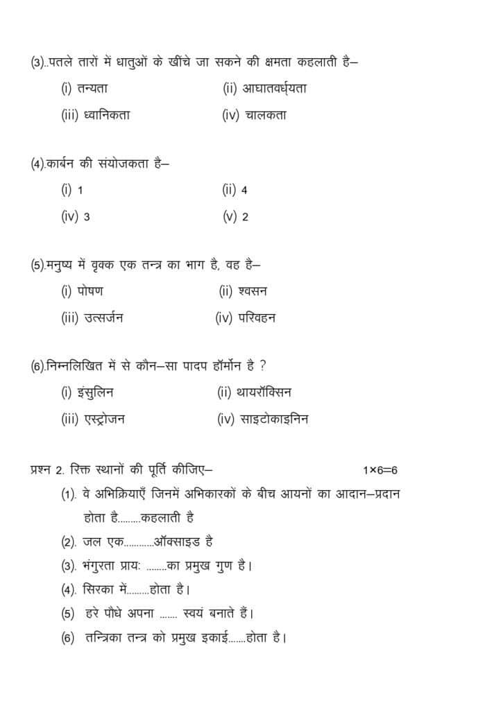 📷 Class 10 Science Model Paper की झलक