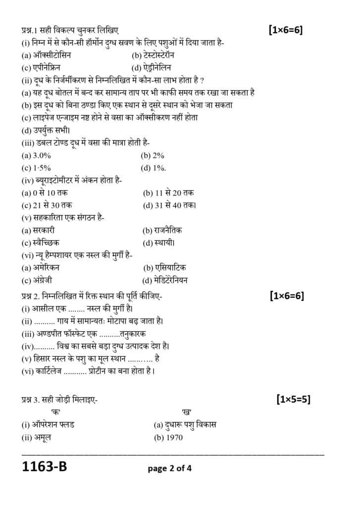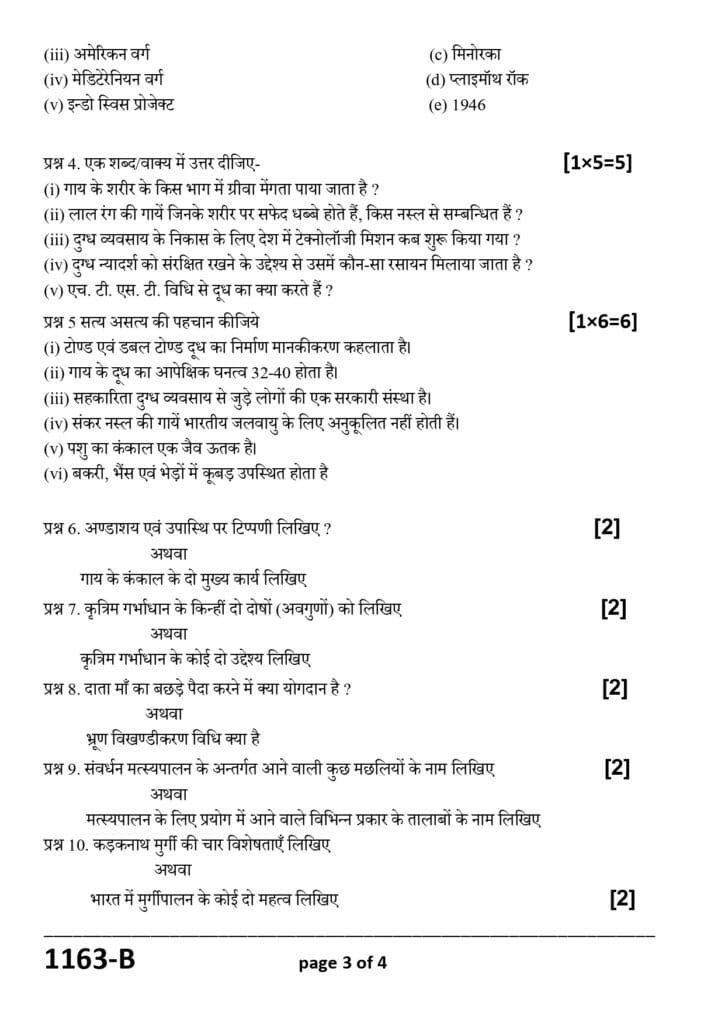 📷 Class 11 Pashupalan Model Paper की झलक