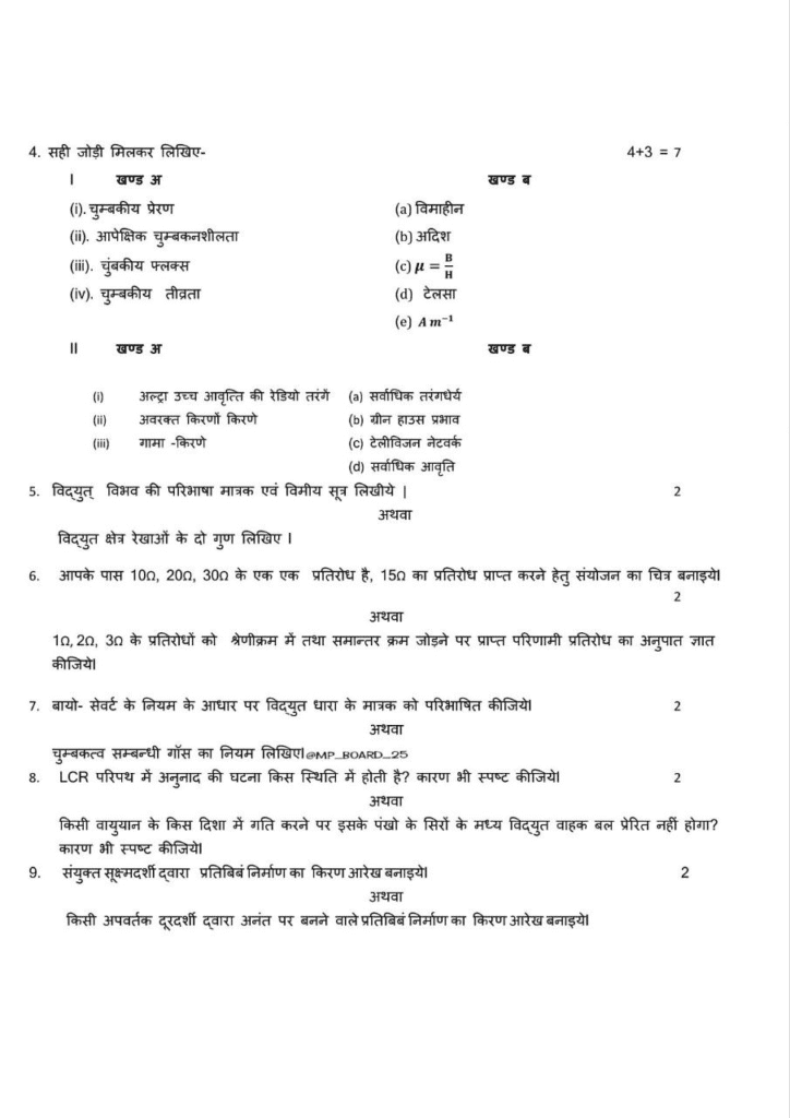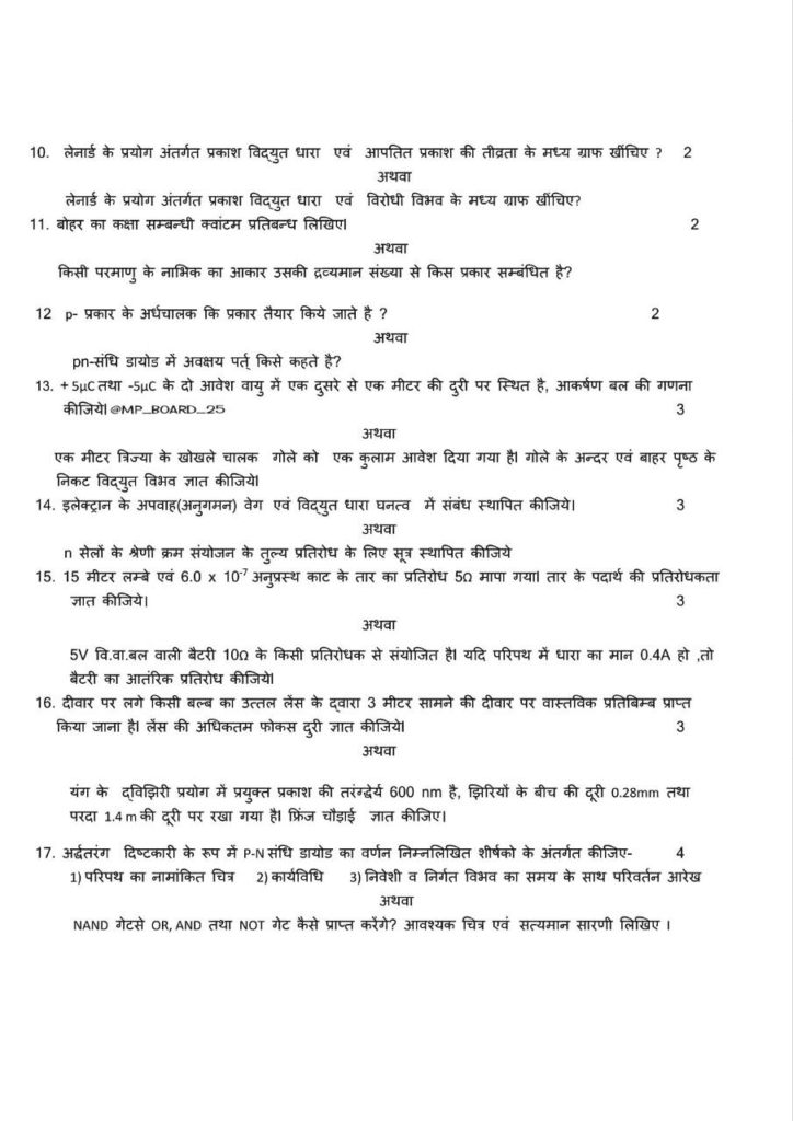 Class 12th physics Half yearly PAPER 2025 || एमपी बोर्ड अर्धवार्षिक परीक्षा भौतिक शास्त्र पेपर 2025